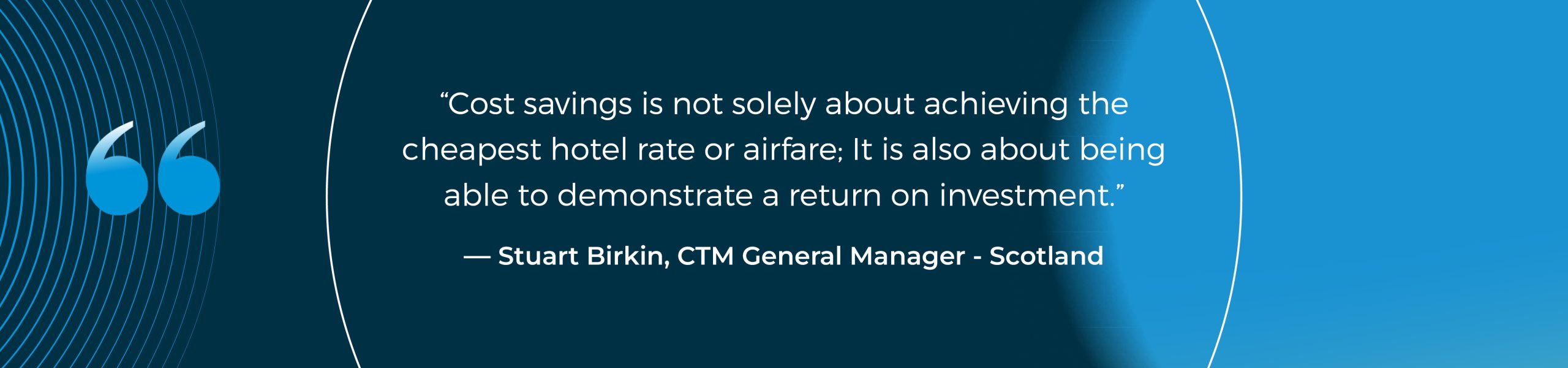 Stuart Birkin, CTM’s General Manager, Scotland explains: “We are here to provide tailored travel management solutions to our customers which focus on driving value through savings, safety and efficiency. We do this through providing customer service excellence, innovative technology, and regular programme review and optimisation strategies that take into consideration current and evolving market conditions to maximise opportunities. Cost savings is not solely about achieving the cheapest hotel rate or airfare; It is also about being able to demonstrate a return on investment. Did the organisation retain or win new customers, launch a new product, recruit and train more staff, or open new office locations as a result of the business travel? Did the business gains outweigh the expense? This is important as the cost of not traveling can be far greater.”